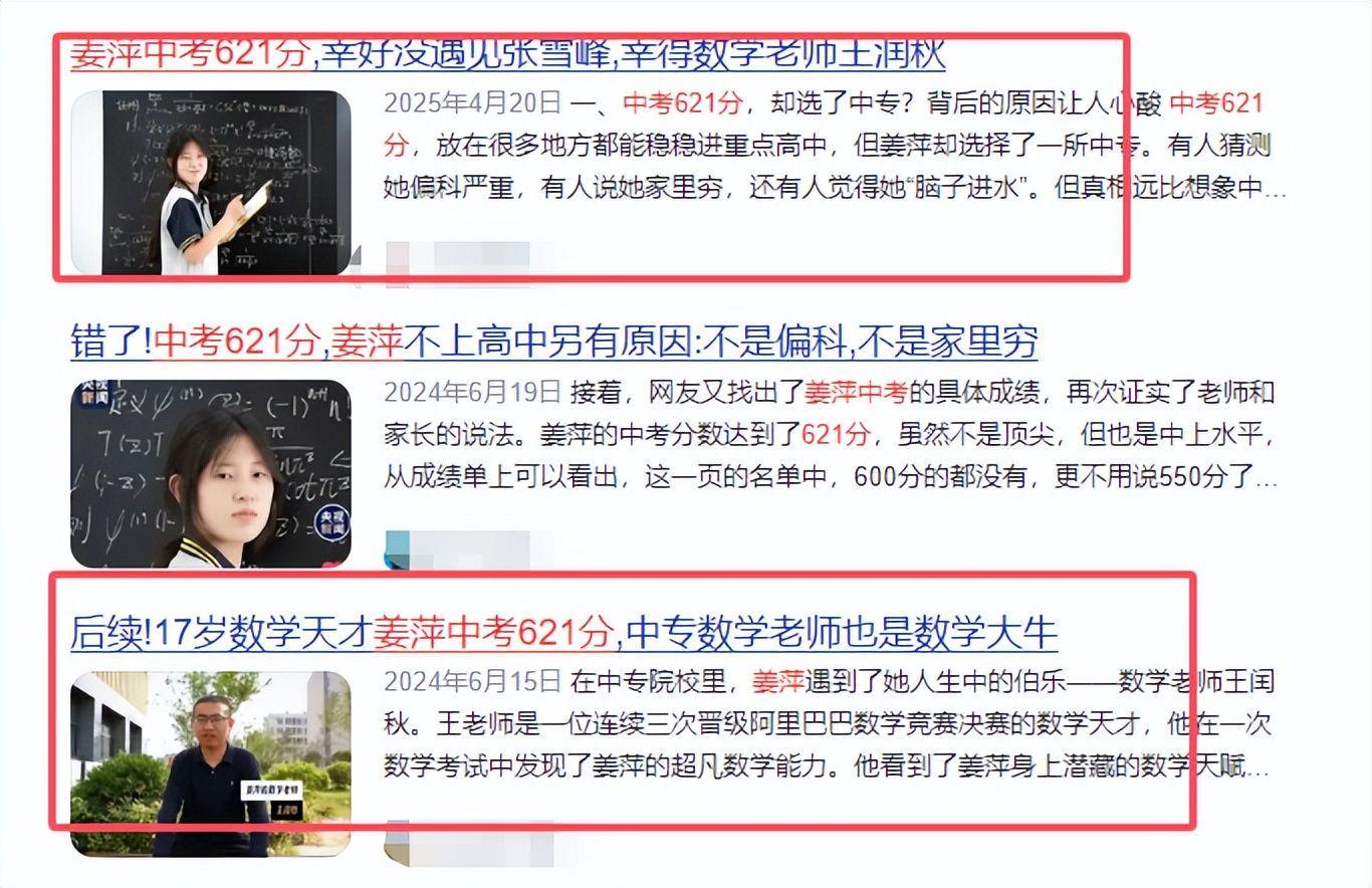 其实姜萍的学习成绩并不算很好,中考621分,在当地足以上普通高中。