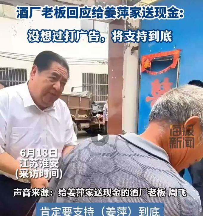 甚至老家的商场户外大屏轮播喜报,还有酒厂老板向姜萍父亲赠送了5000元红包和两瓶酒。