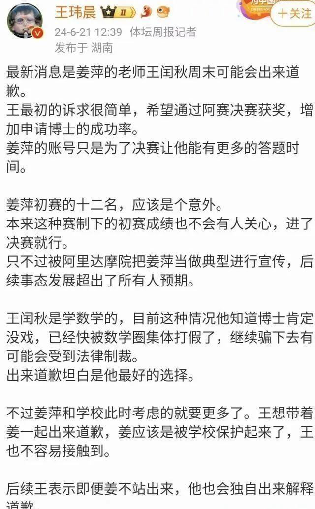 从姜萍成绩公布的那一刻起,数学圈的质疑声就没停过。