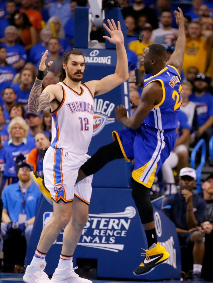 三年的学校生活点燃了他内心的火苗,从此,亚当斯的人生有了篮球这个锚点,而他在球场上又有了篮板球这个新锚点,支撑着他健硕的身躯在人生海海中坚如磐石。也难怪他在球场上站似一棵松,任尔东西南北风。亚当斯刚进入雷霆队,队友尼克-科里森就发现了这一点:“他不太容易被影响,也不把事情看得太重,他的态度就是‘别太把自己当回事’。”